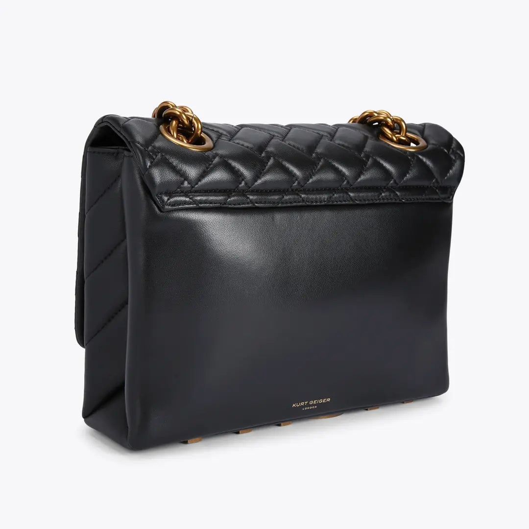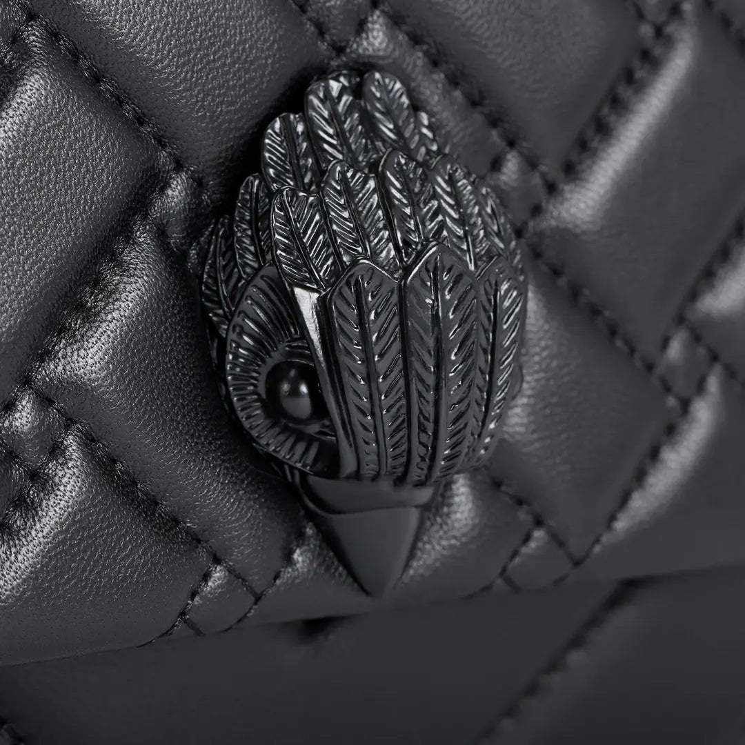 The Large Kensington Kurt is crafted from a black lambskin leather with overstitch quilt pattern. The black eagle head features all over feather detail. The bottom of the bag features an antiqued brass 'KURT'.