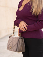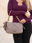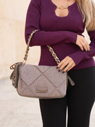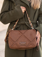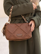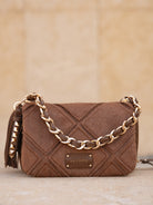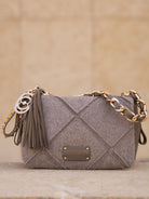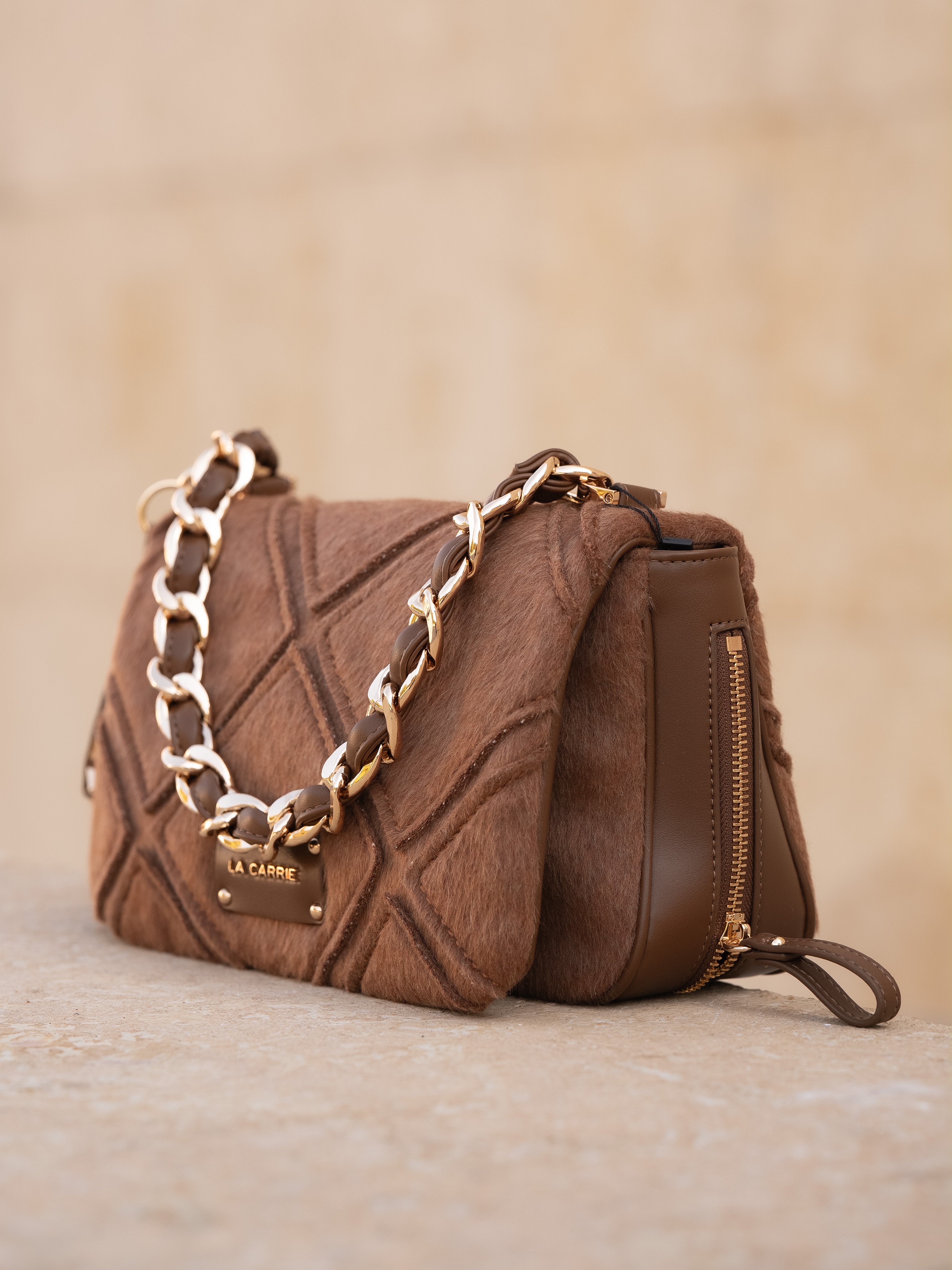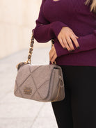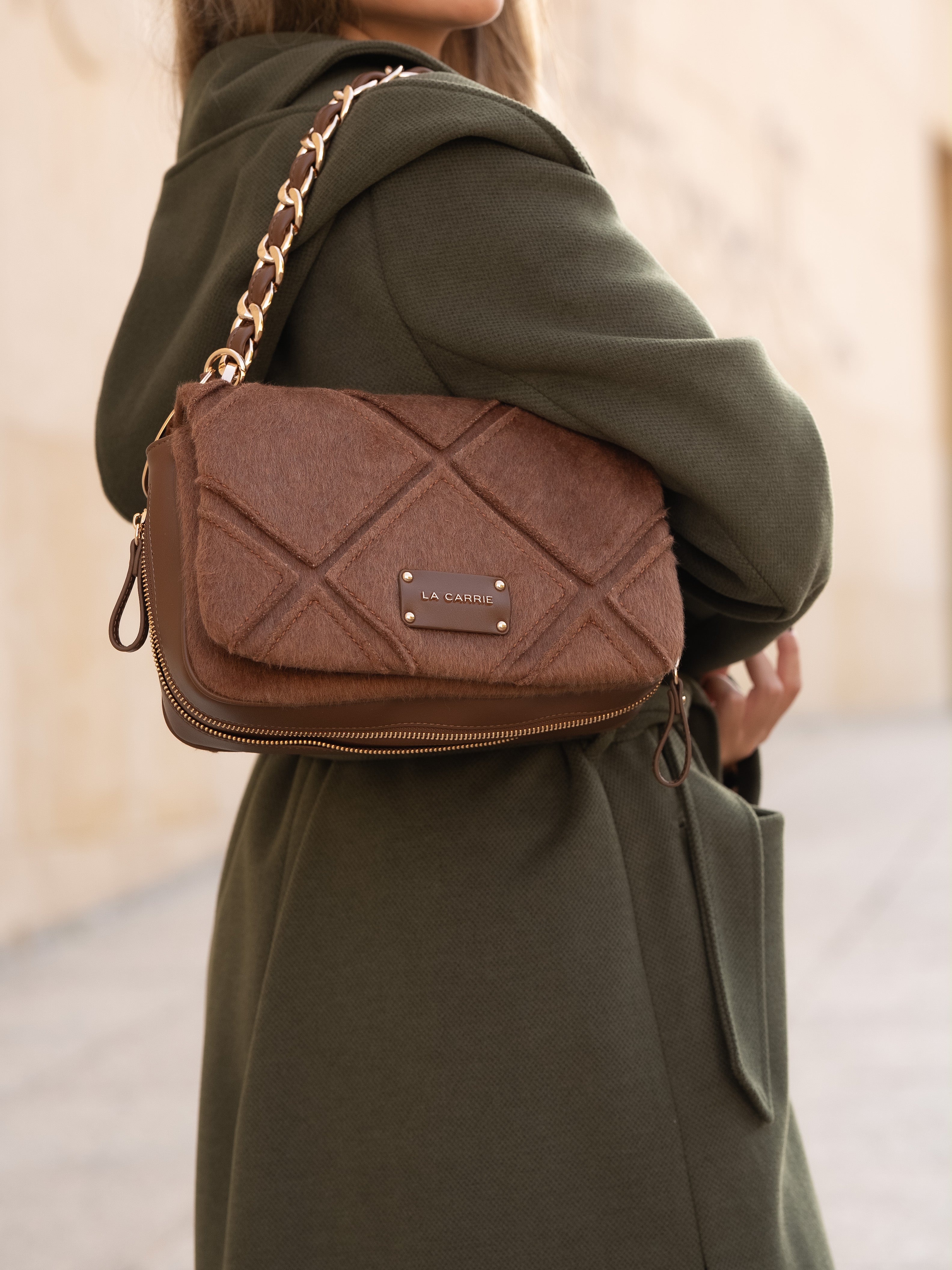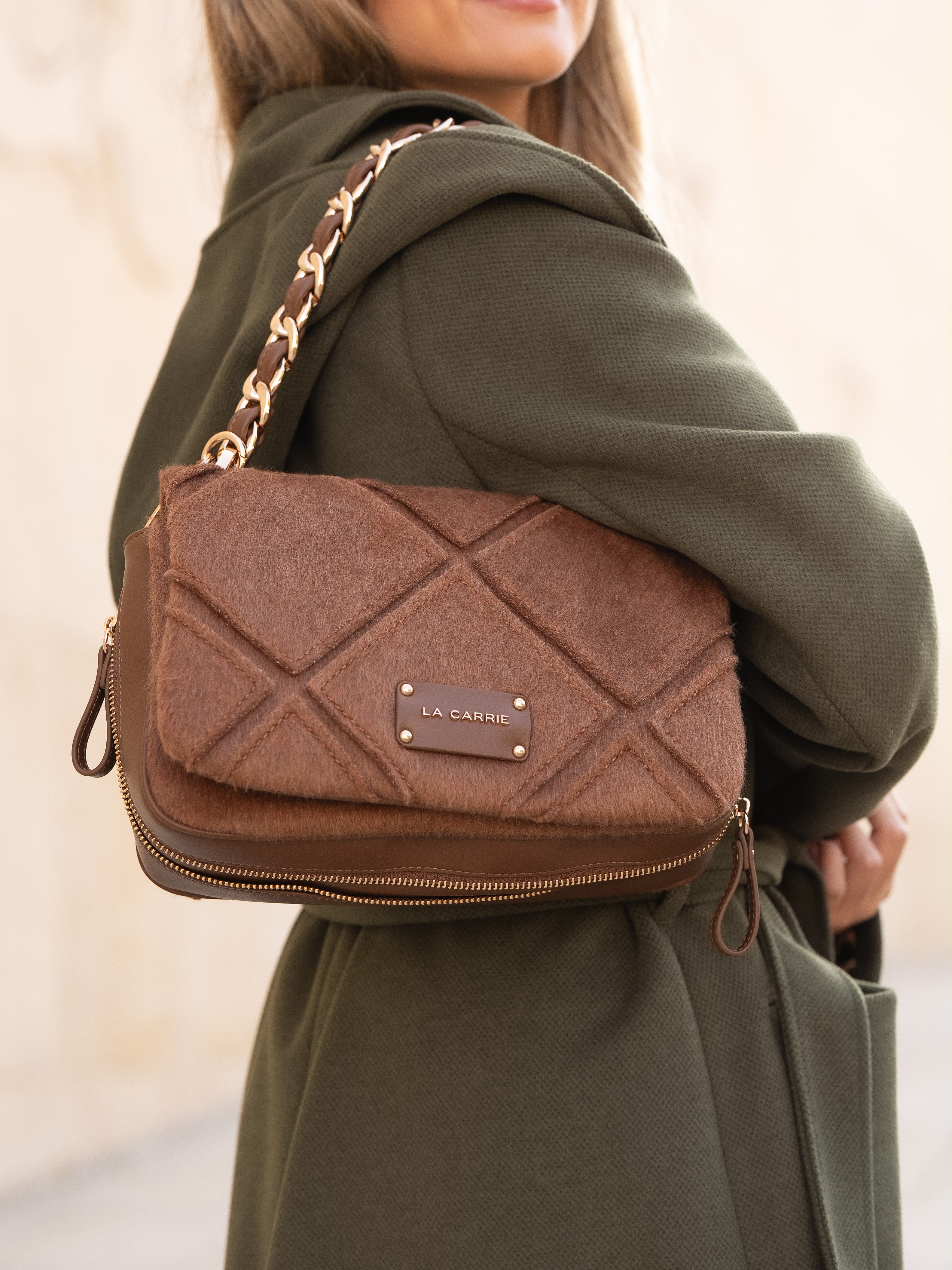 Shoulder bag in boiled wool with stitched diamond pattern, chain handle inserted in eco-leather and removable shoulder strap