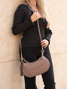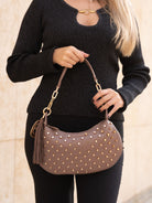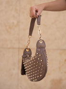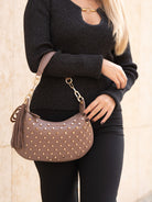 Small hobo bag in eco-leather with applied studs, zip closure and removable handle