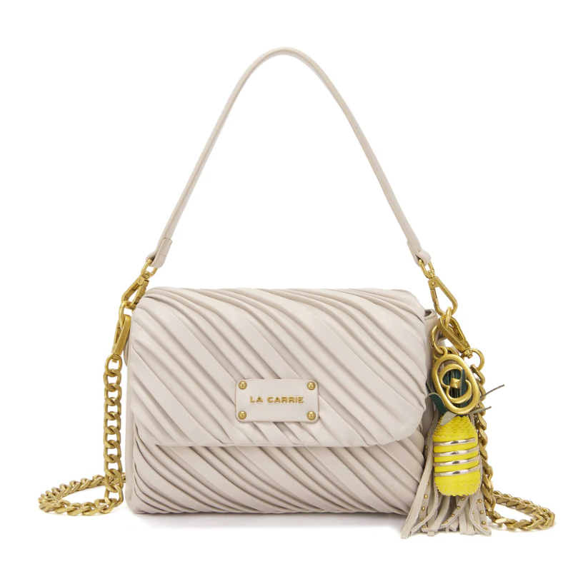 PU nappa shoulder bag, with pleated workmanship, removable handle and shoulder strap
