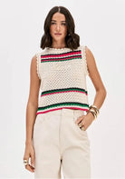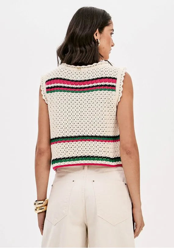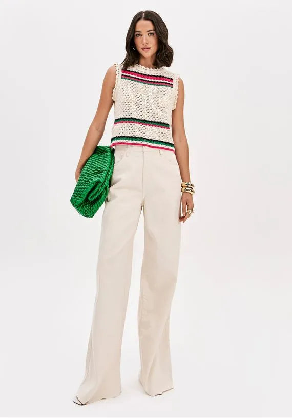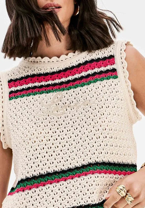 Blusa Sem Mangas Tricô Com Bordado