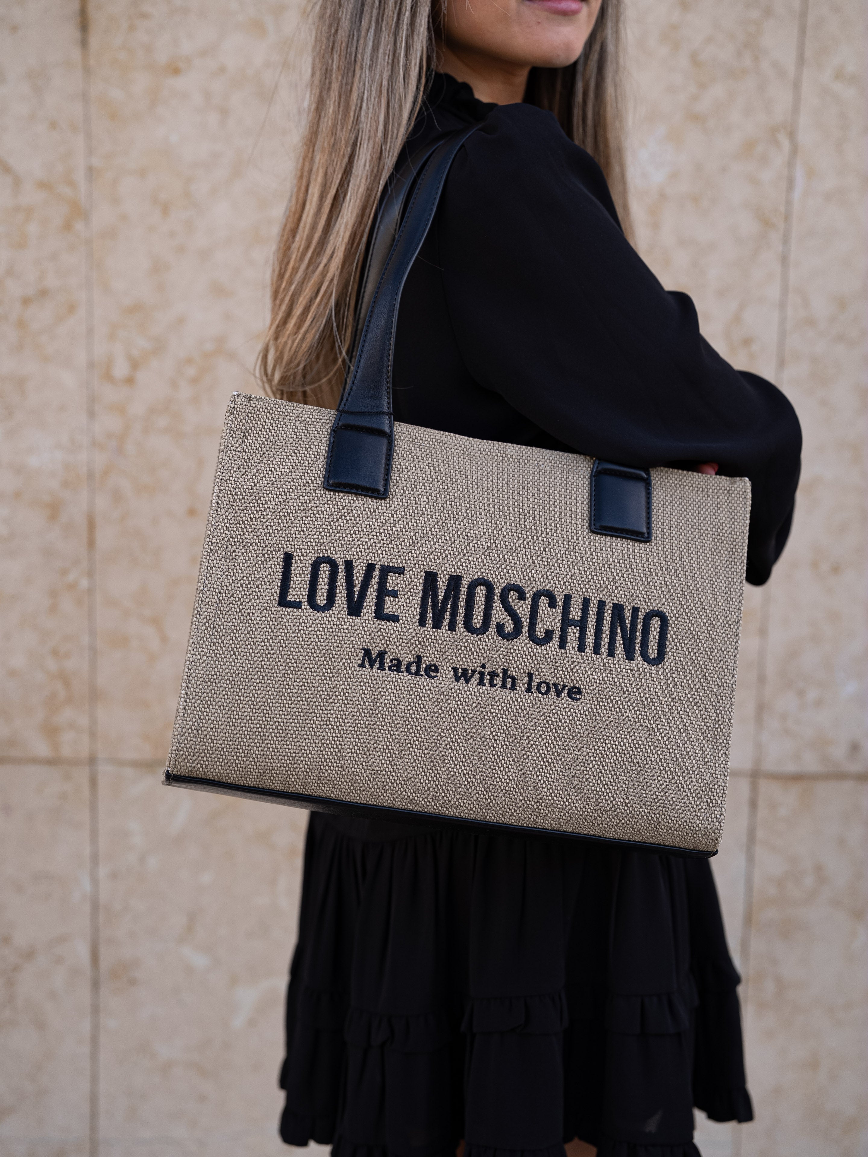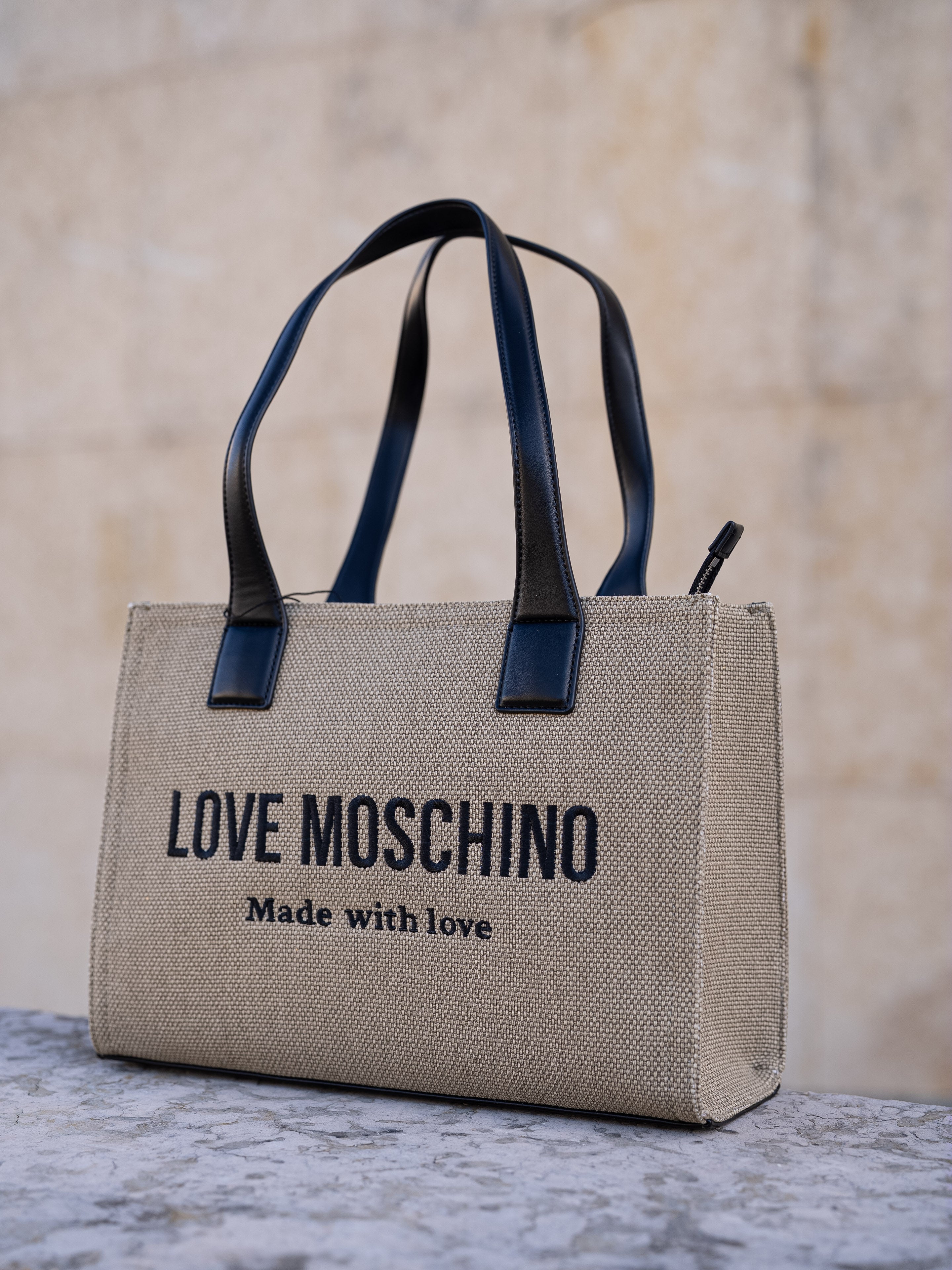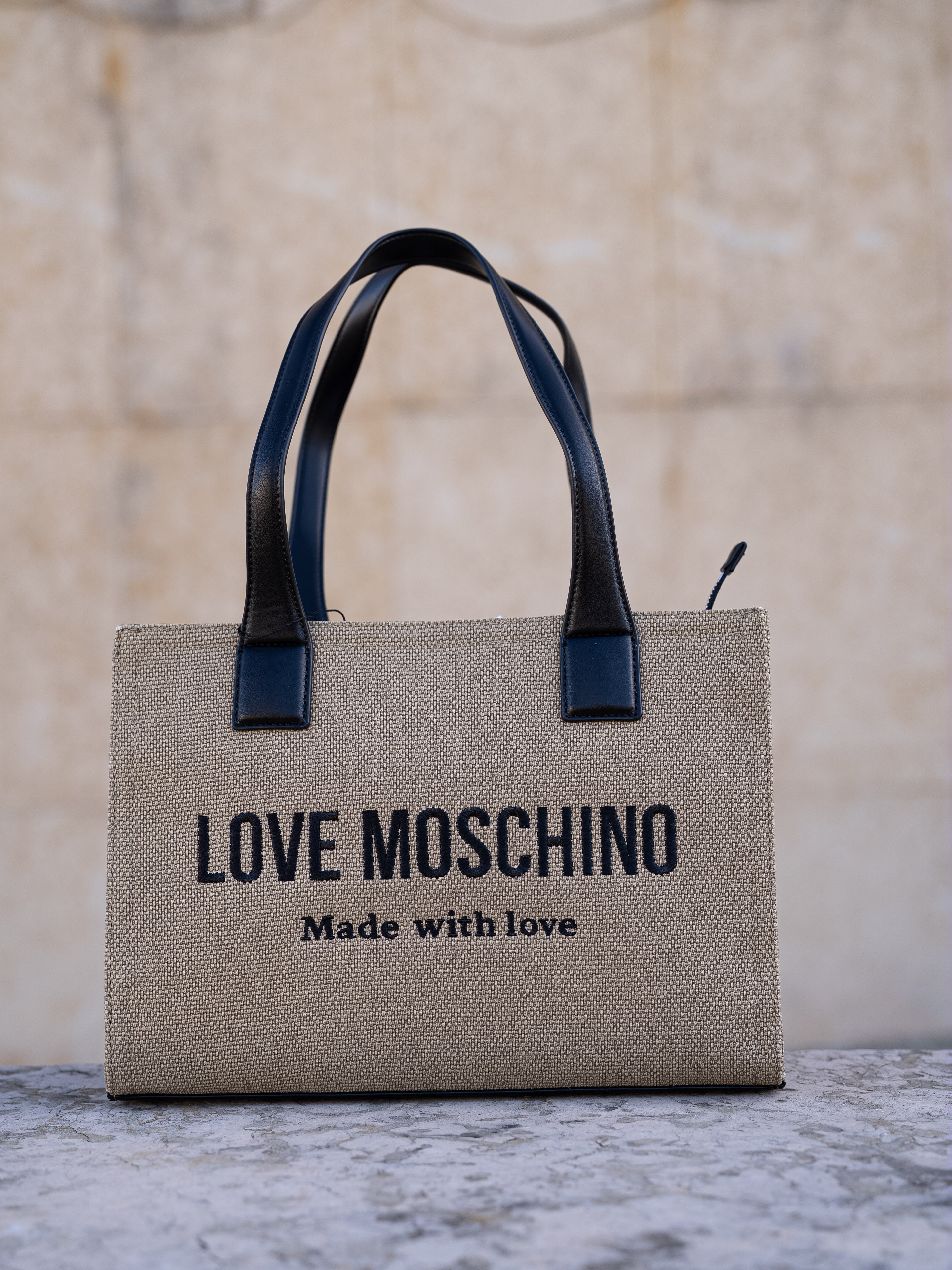 Beige and black shoulder bag