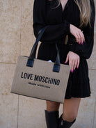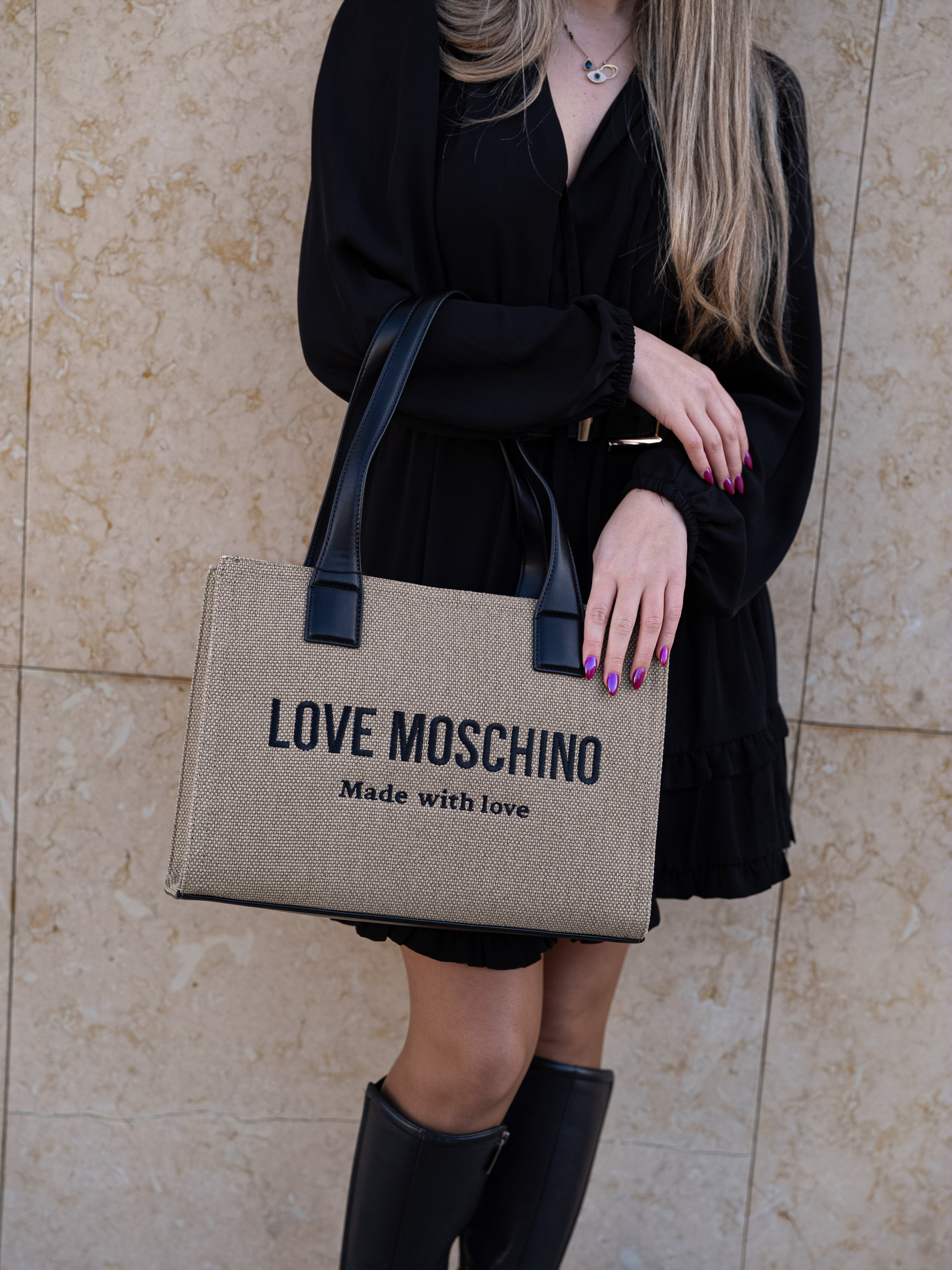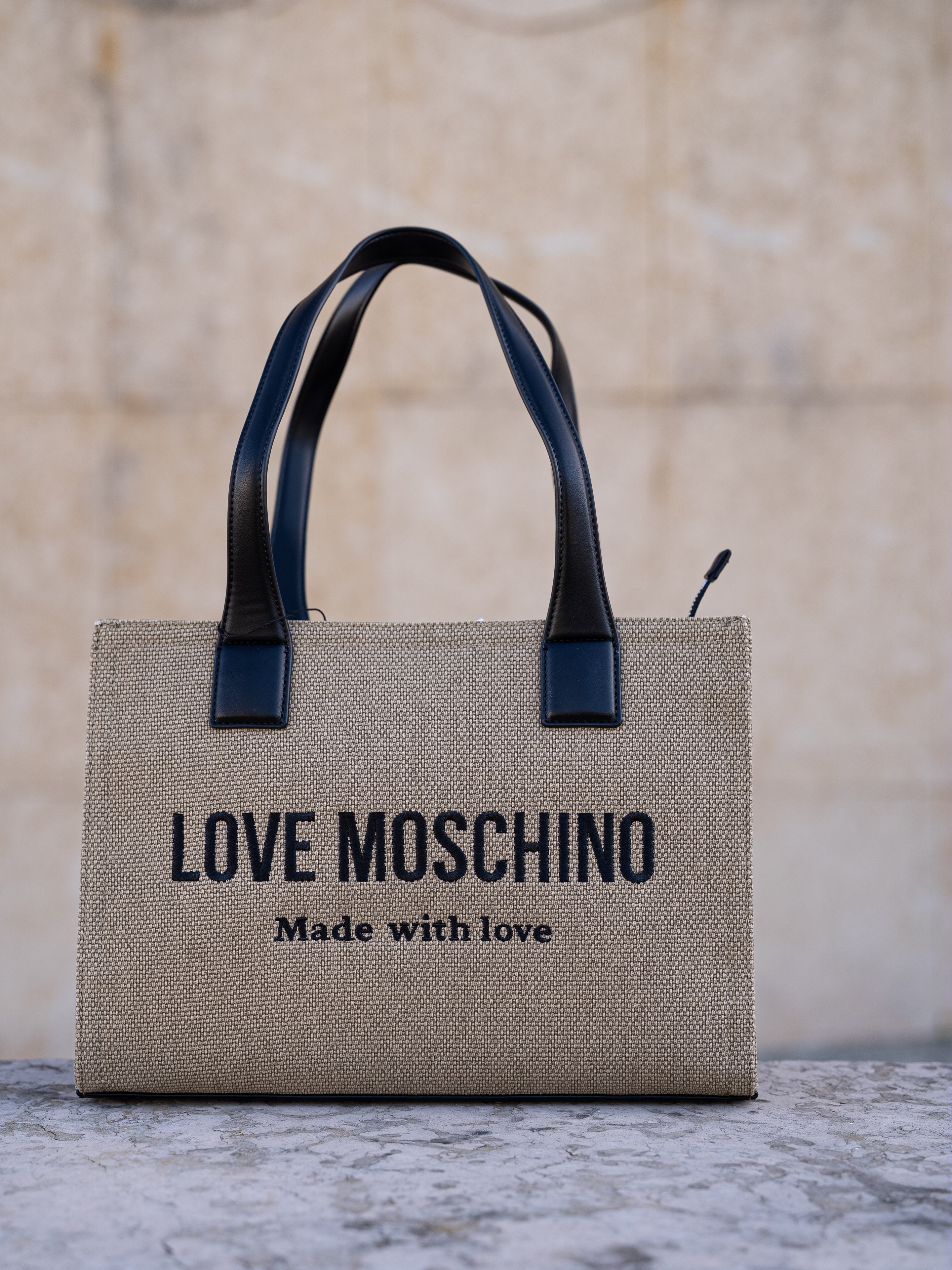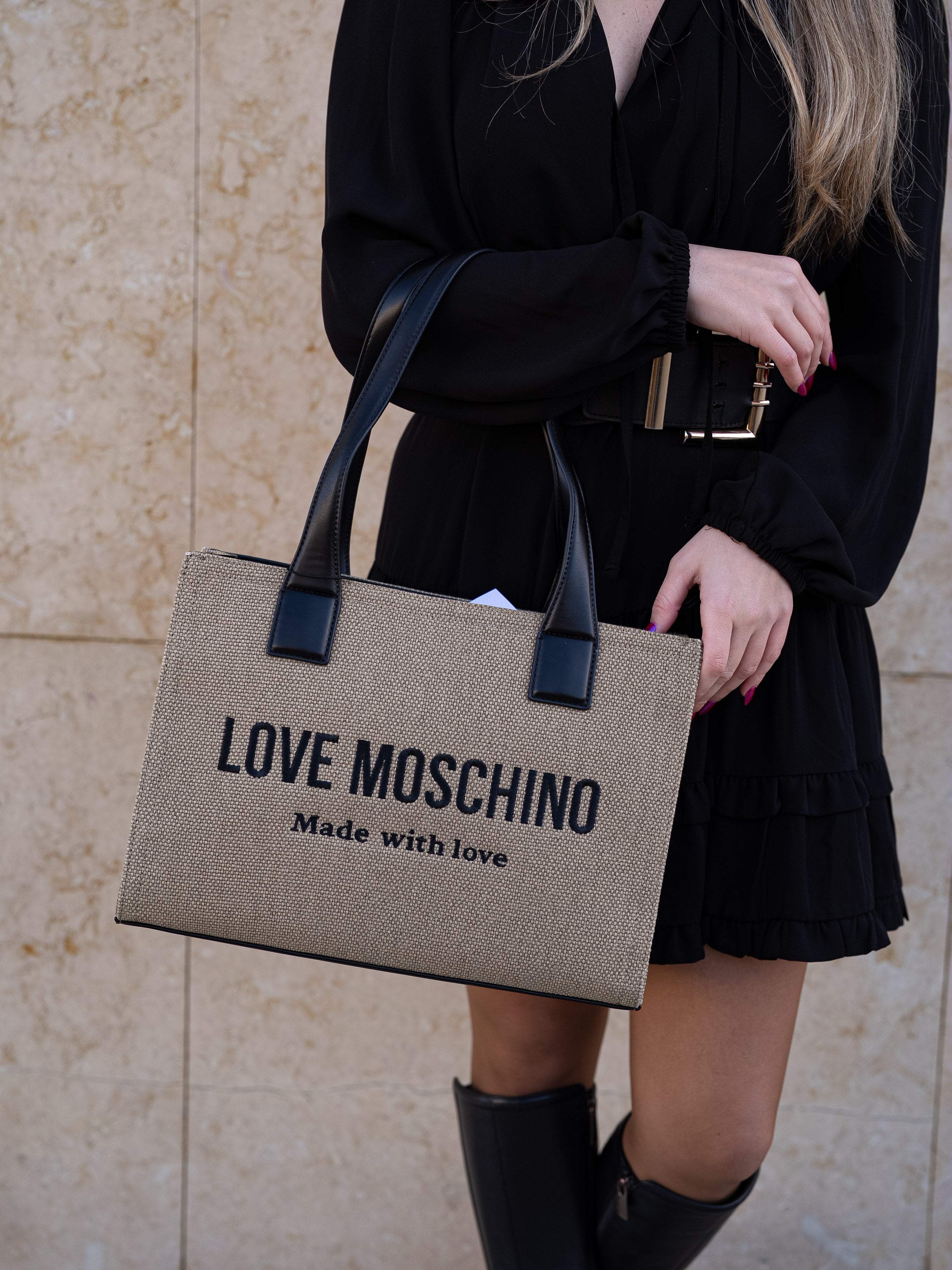 Beige and black shoulder bag