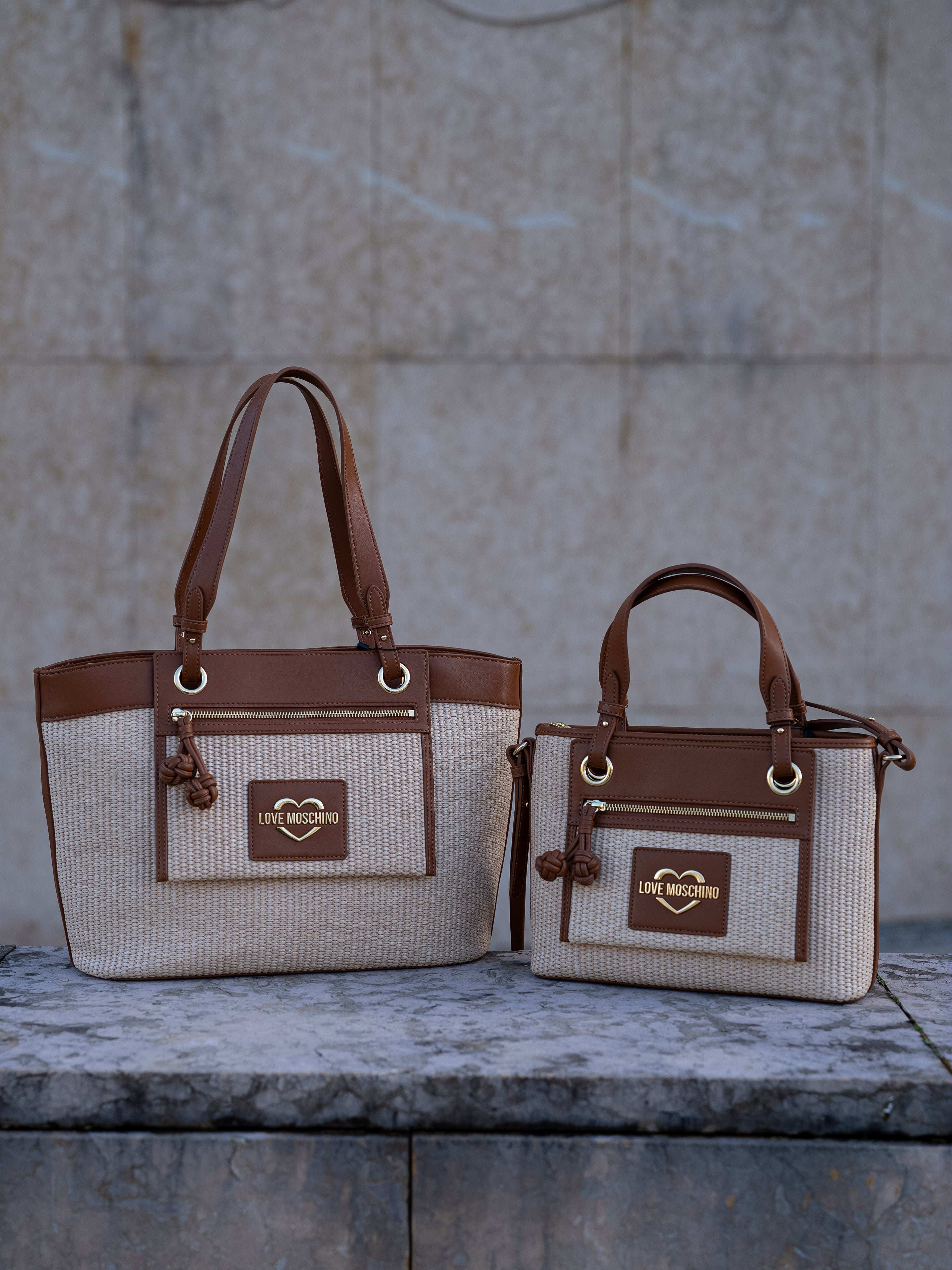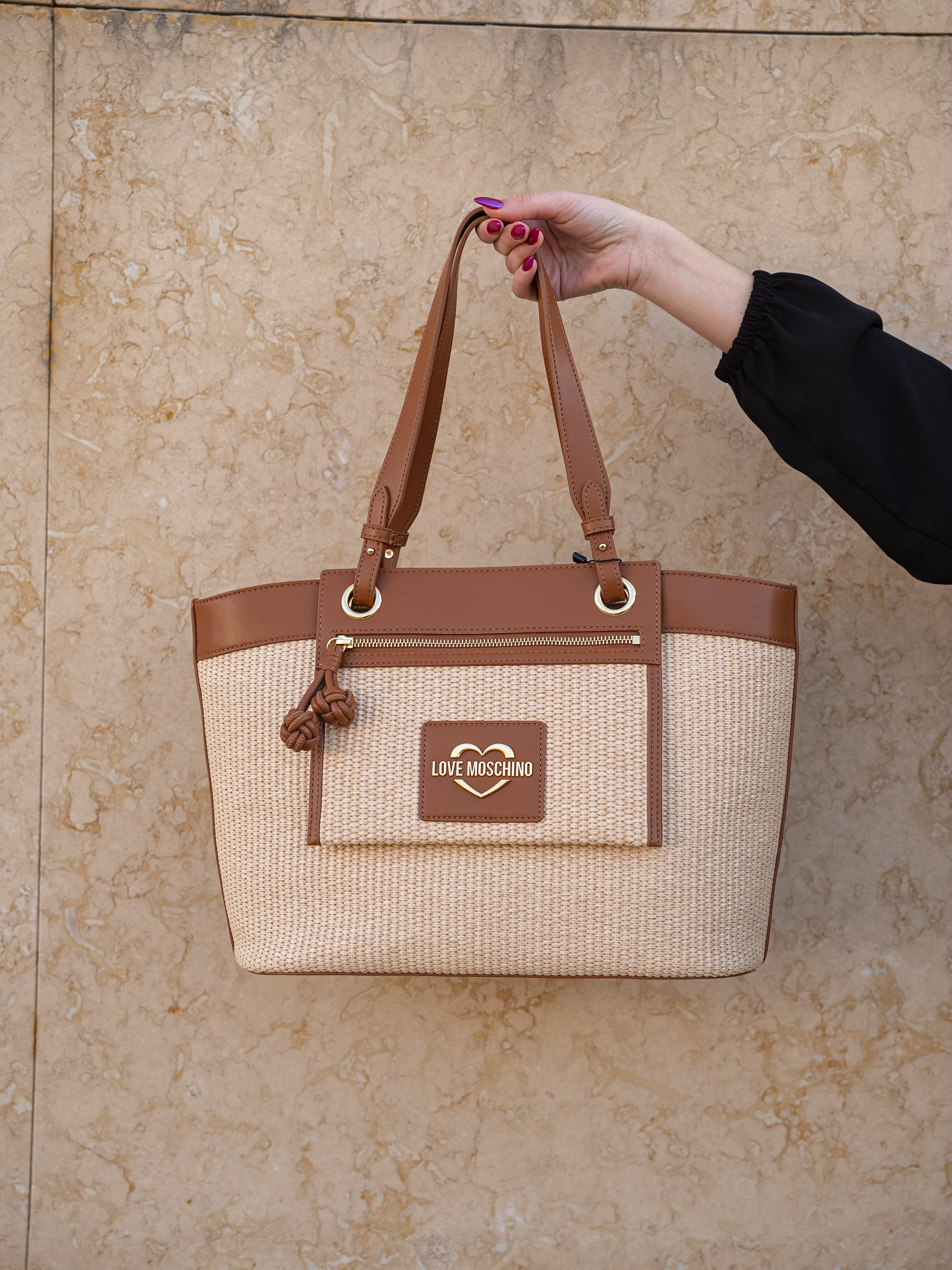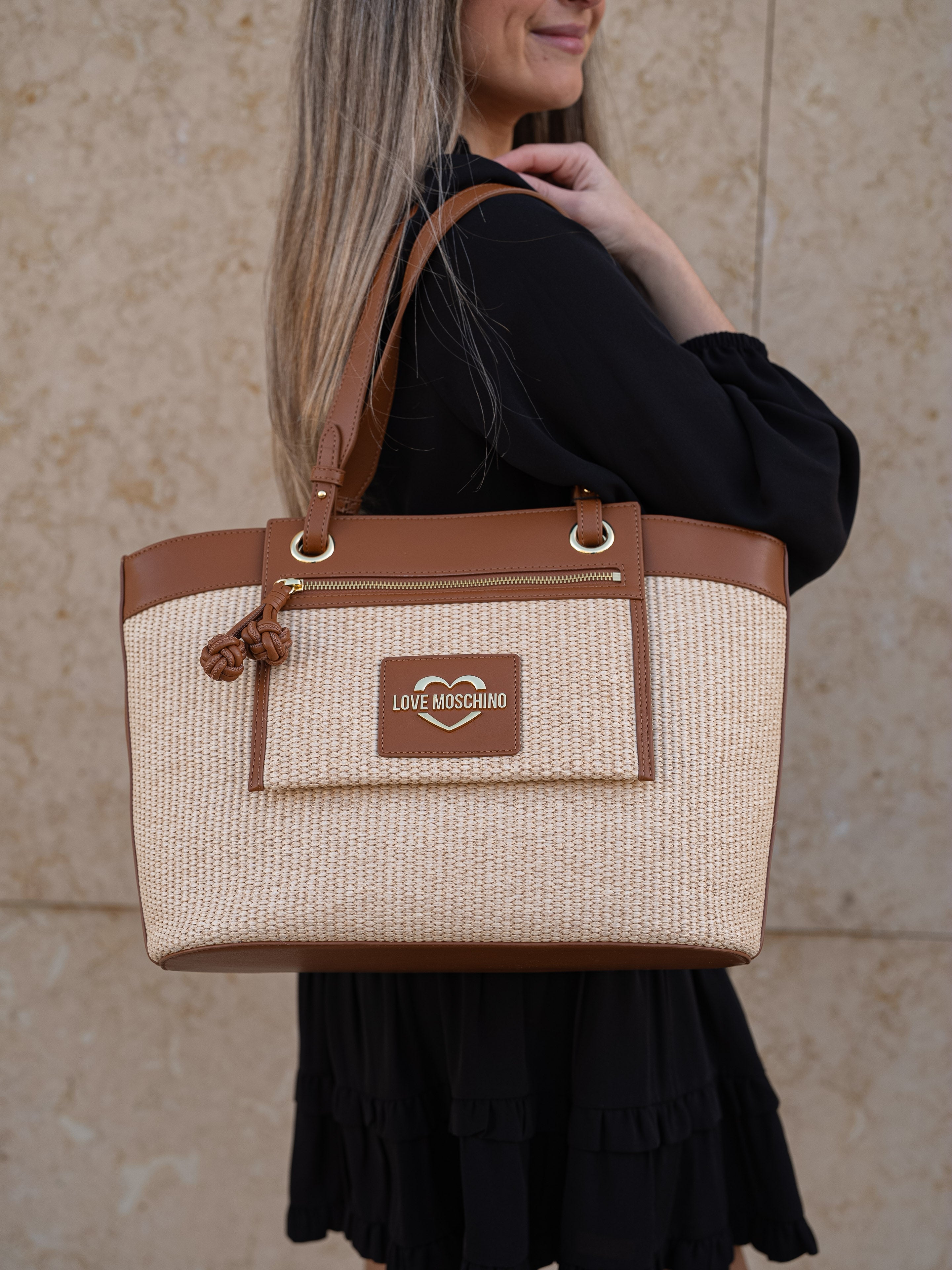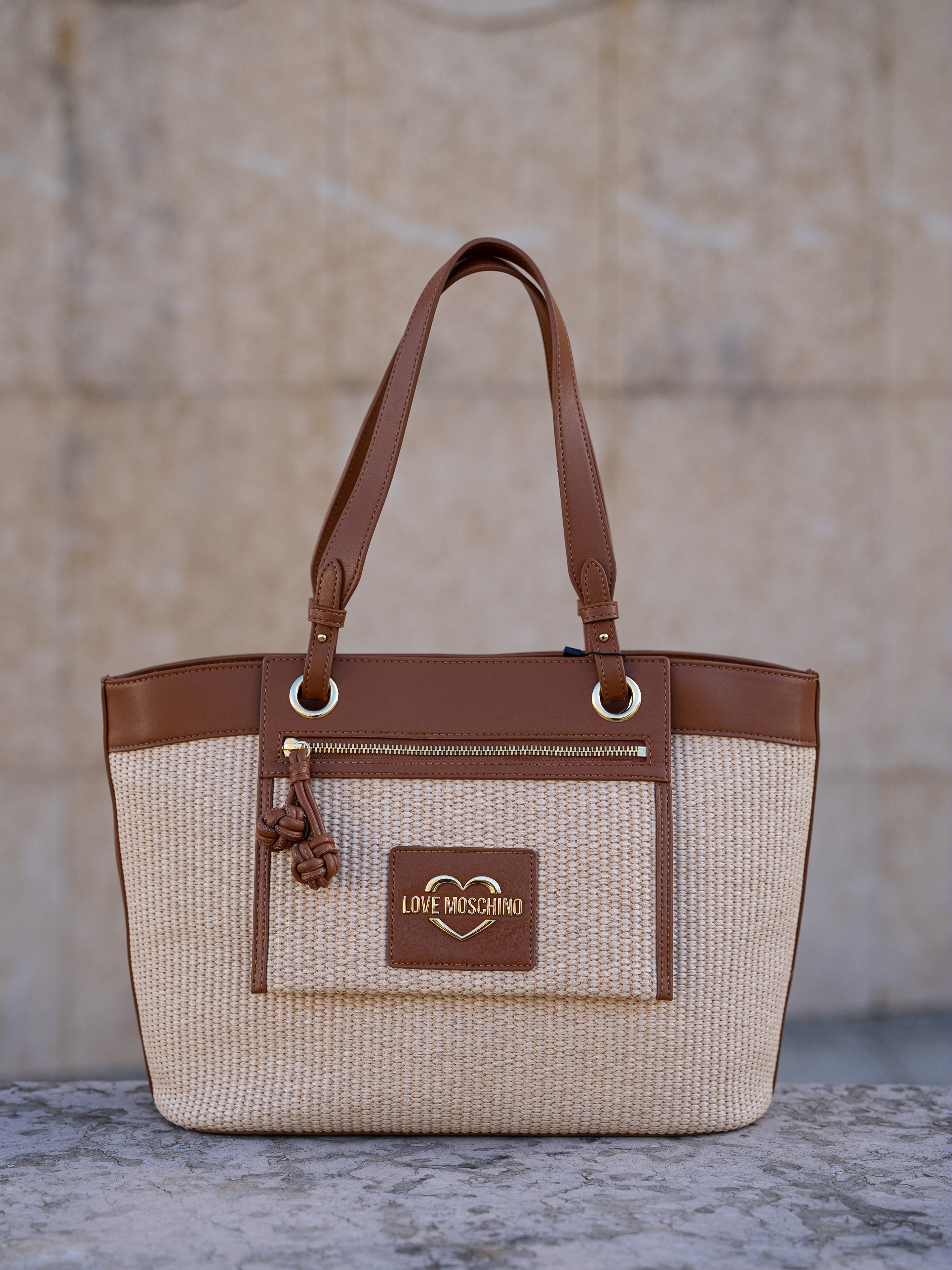 Beige and brown tote bag