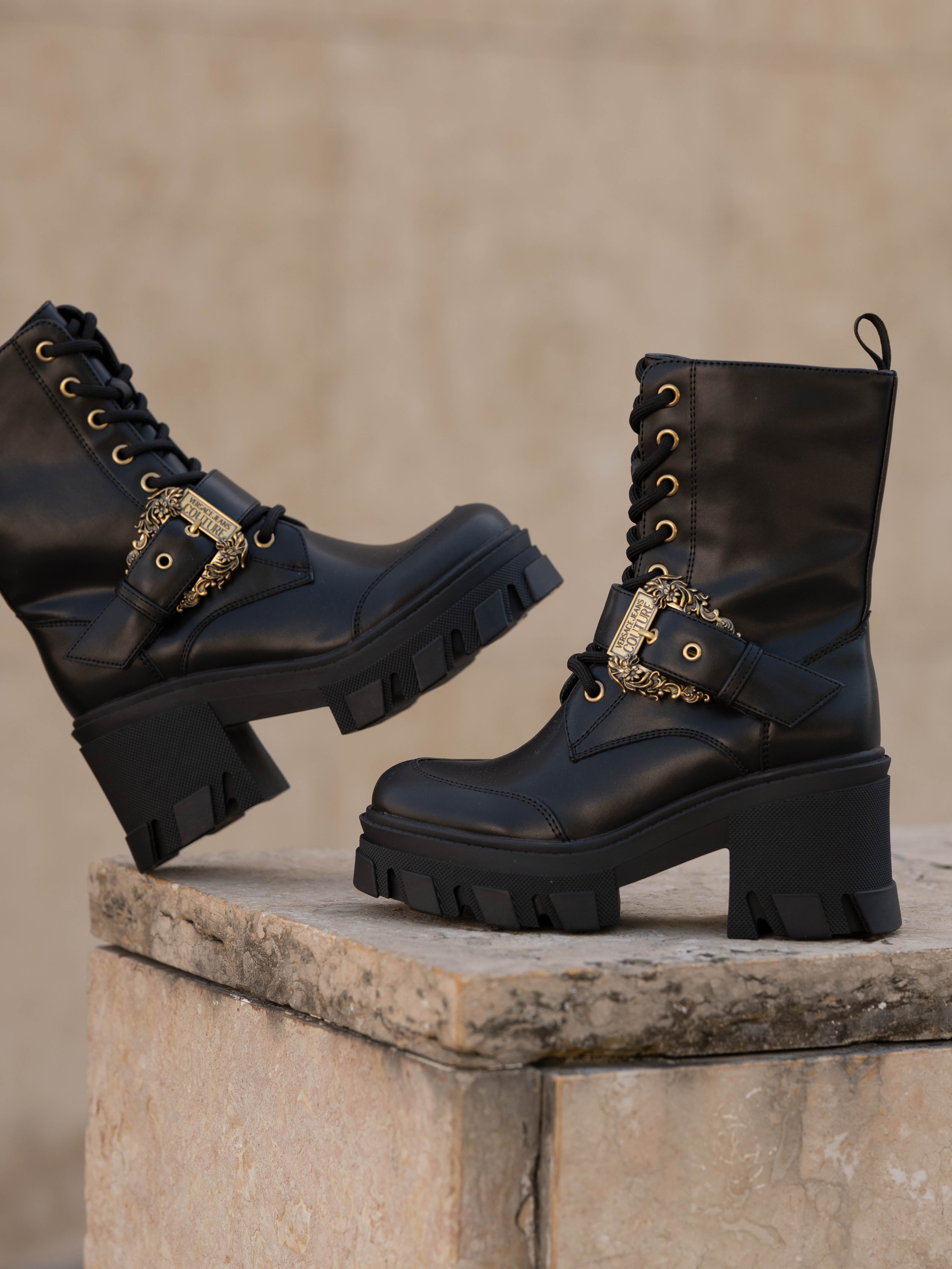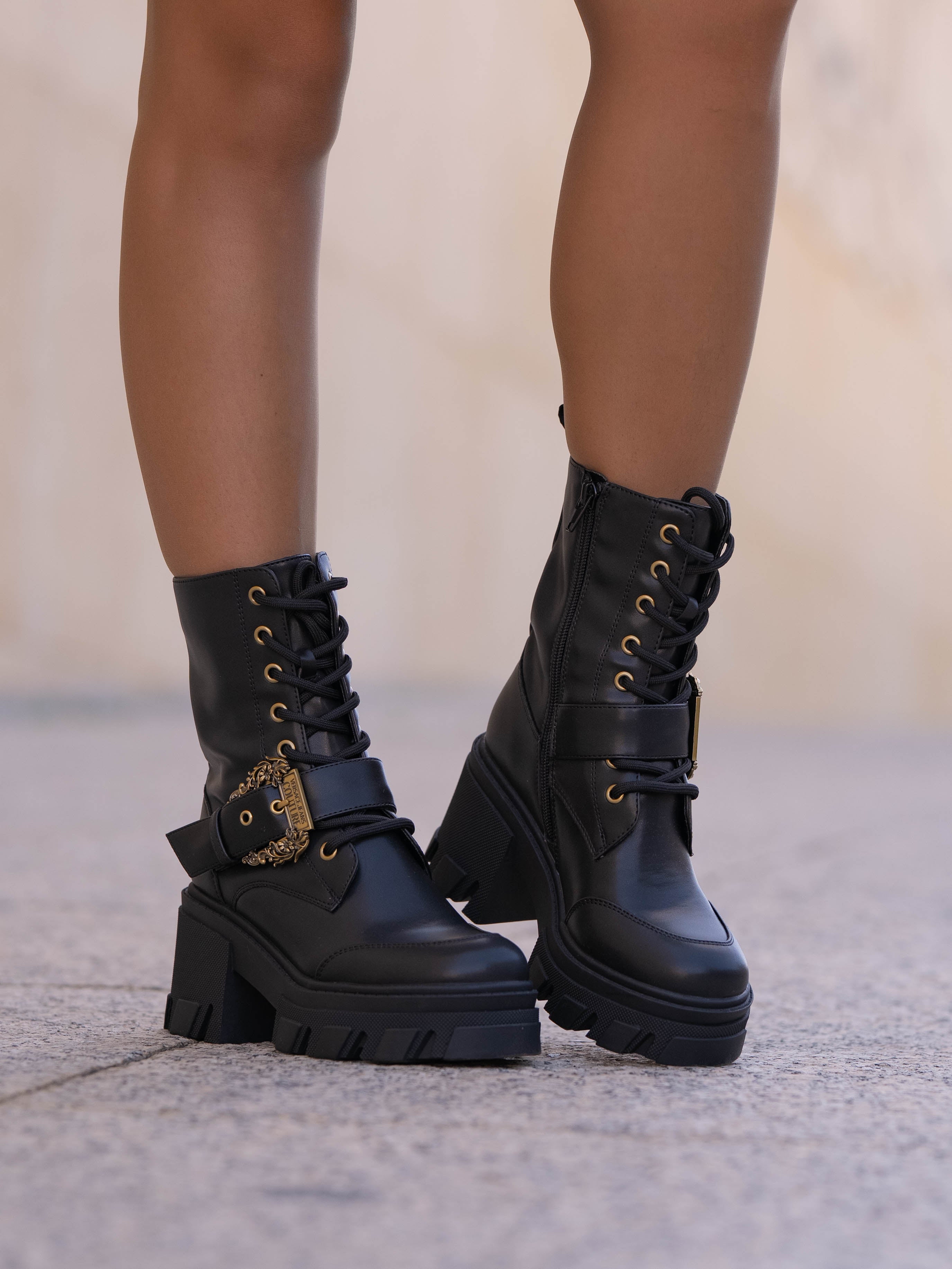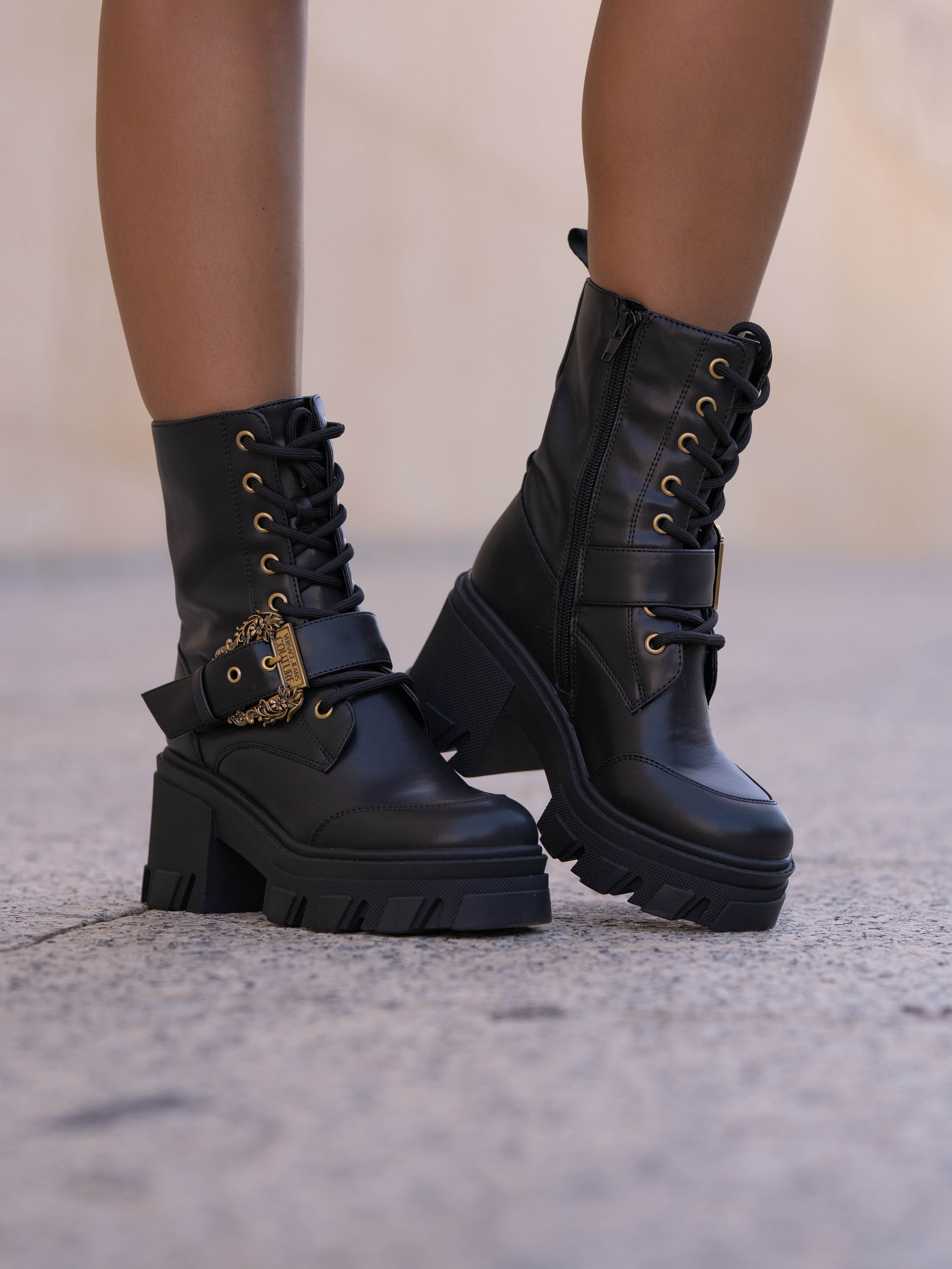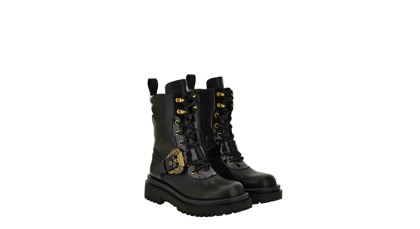 Black boot with gold details
