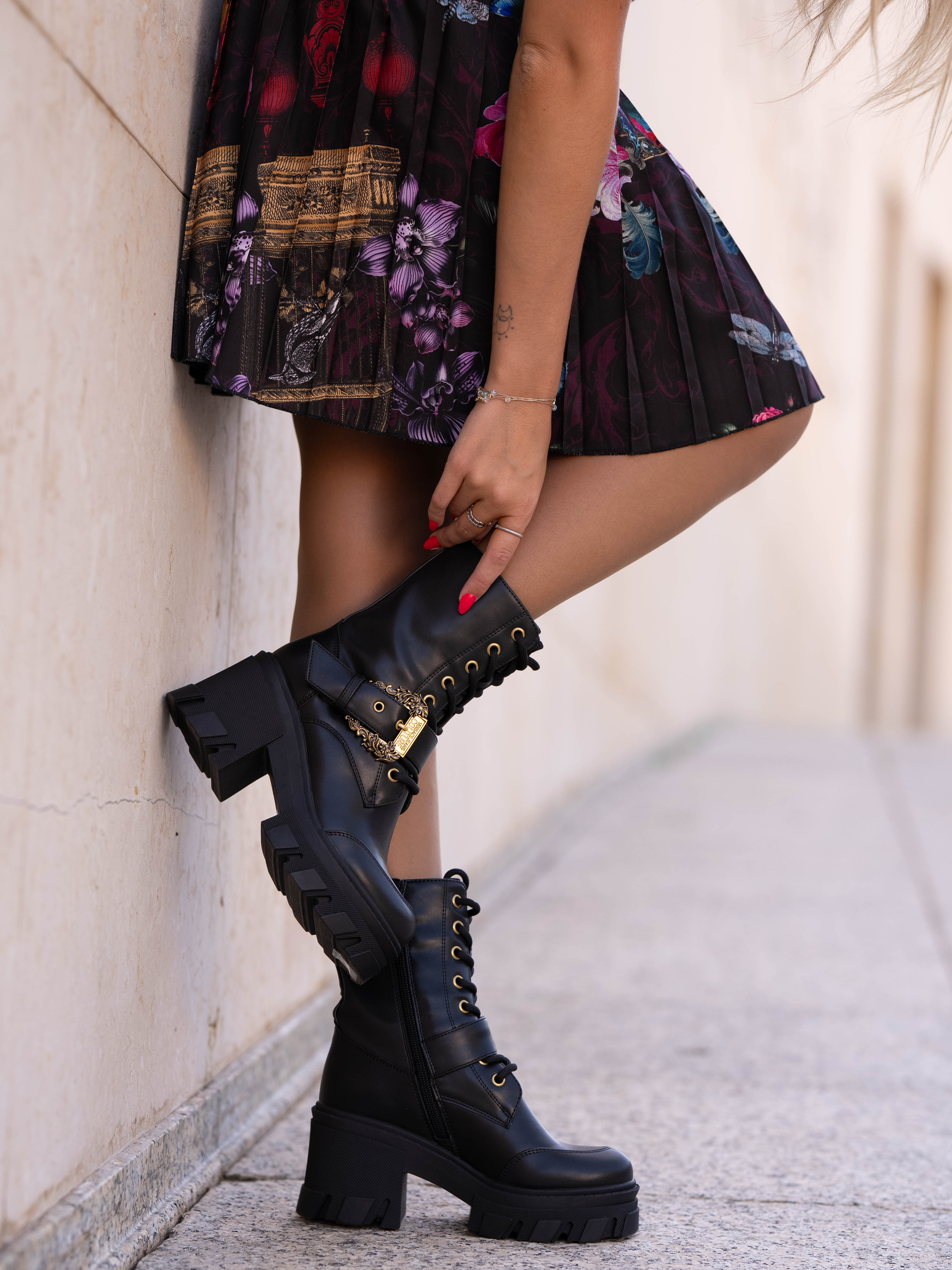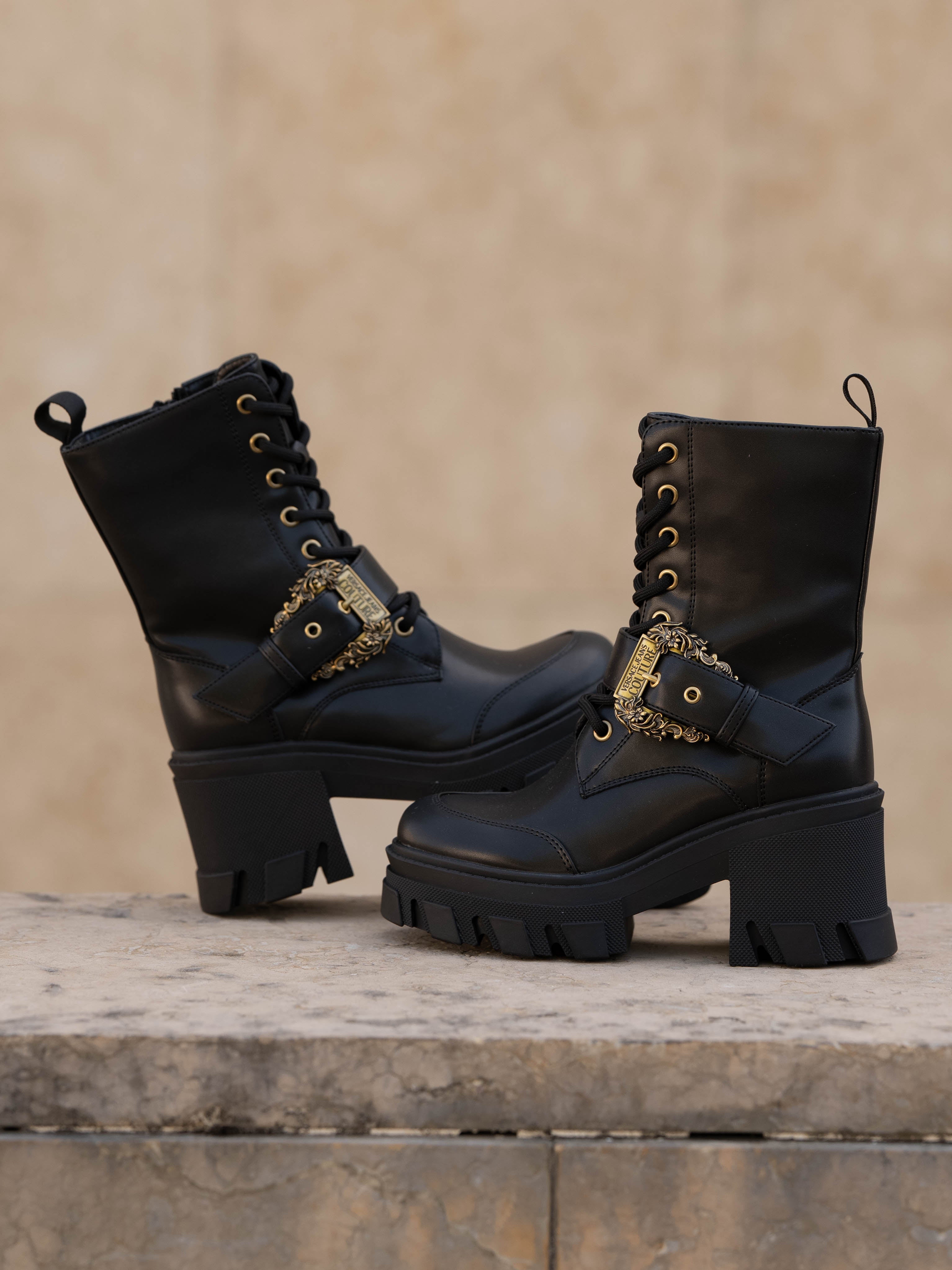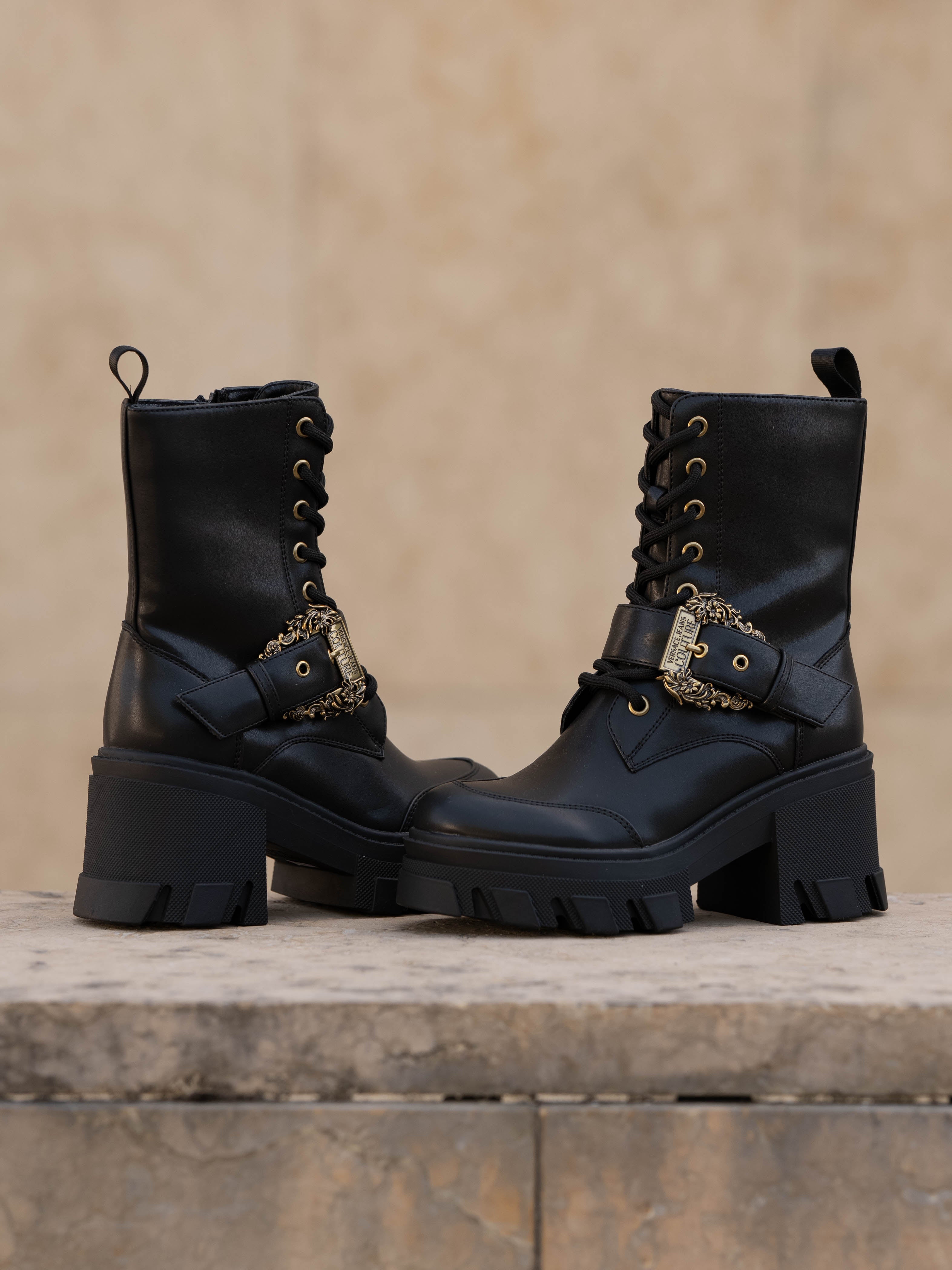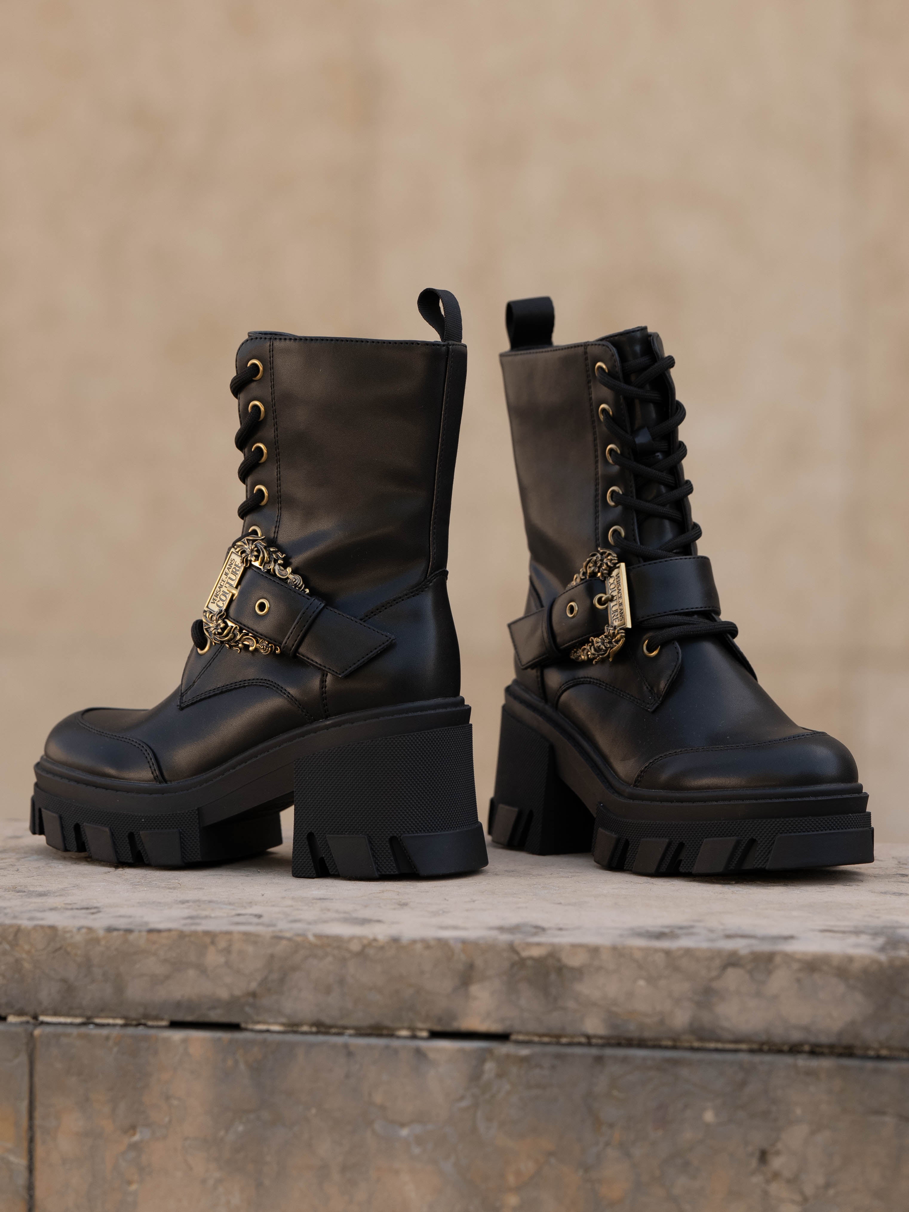 Black boot with gold details