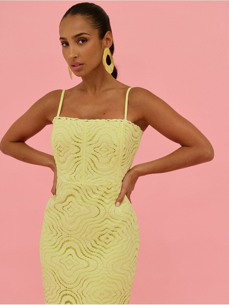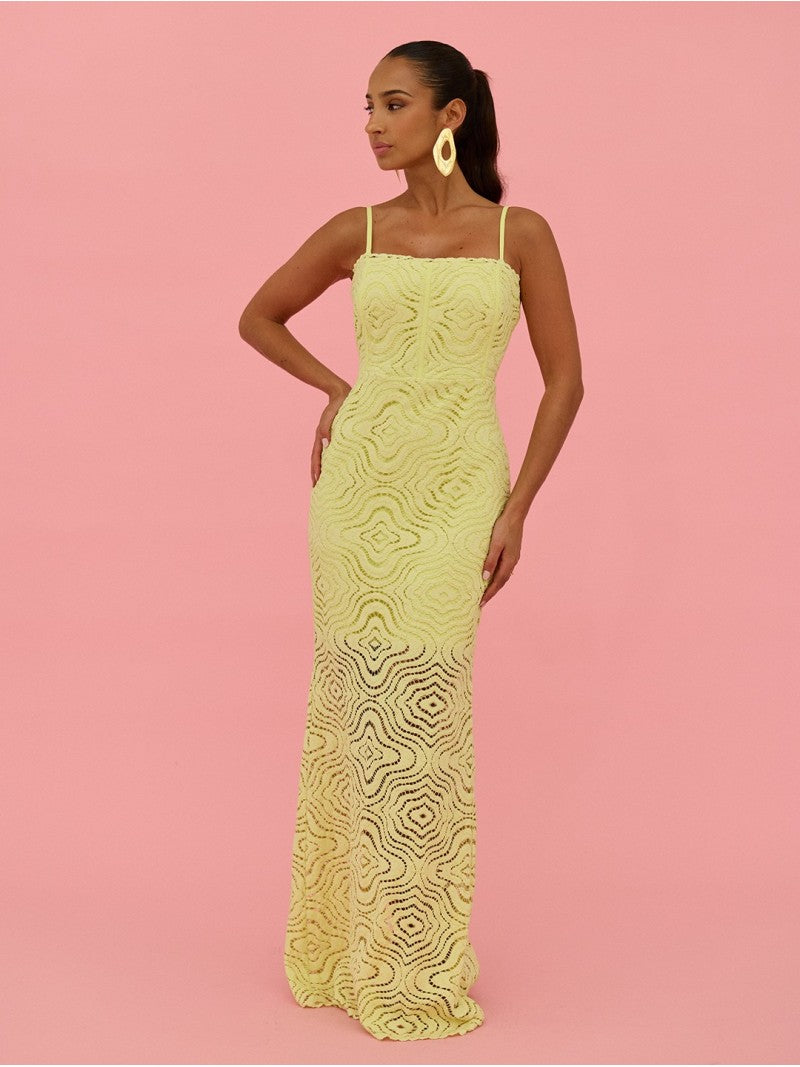 Vestido comprido em renda de alça fina