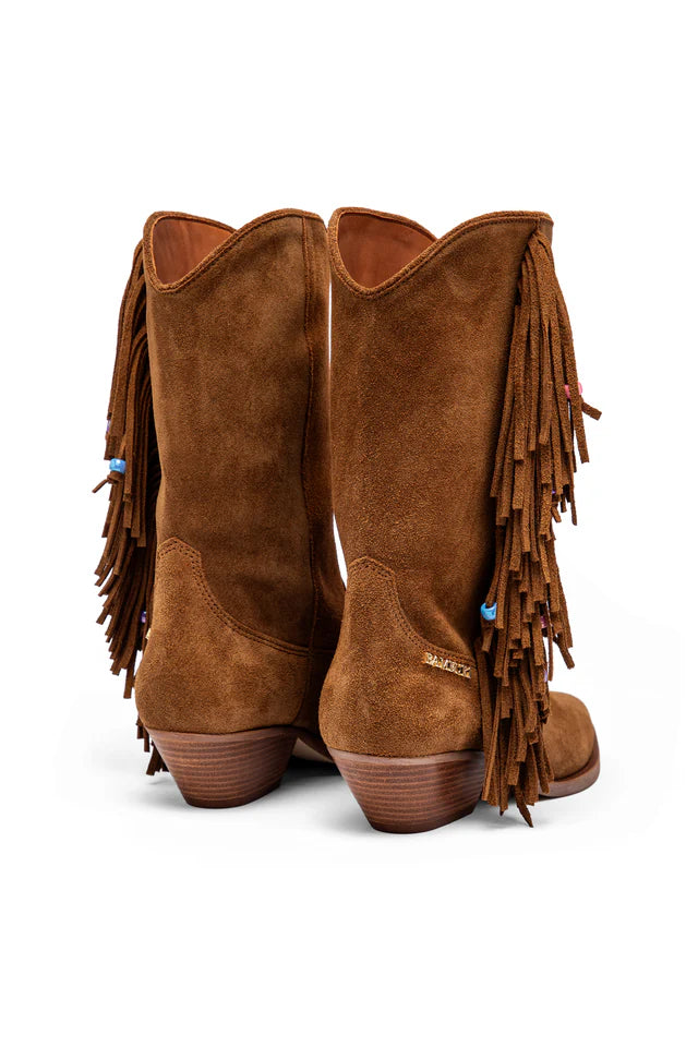 Inspired by Western heritage and reinterpreted with a refined, contemporary attitude, these brown suede fringe cowboy boots are a statement of effortless style.